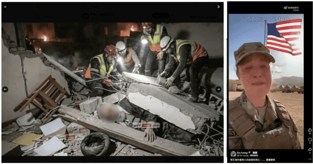 This time, AI-generated content played a significant role. Fabricated videos circulated widely, including clips falsely claiming the death of supreme Leader Ali Khamenei, emotional footage of U.S. soldiers wanting to return home, and AI-generated news anchors asserting that China had provided military support to Iran or “locked down” U.S. forces. These claims lacked credible evidence.